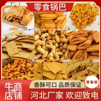 河北散装小零食全年加工生产各种网红食品:鲜虾片,亚麻籽烤酥,苦乔片,手工山药酥,锅巴,妙脆角,蔬菜卷,大片脆,地锅脆片,贝壳酥,龙卷酥,山药秋葵酥,花椒锅巴,鸭