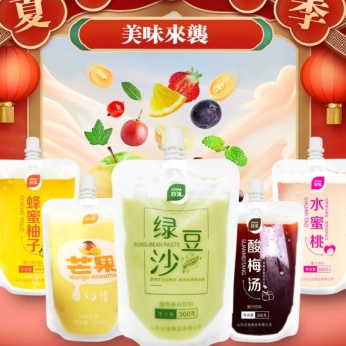 自立袋饮料绿豆沙、炭烧奶茶、酸梅汤