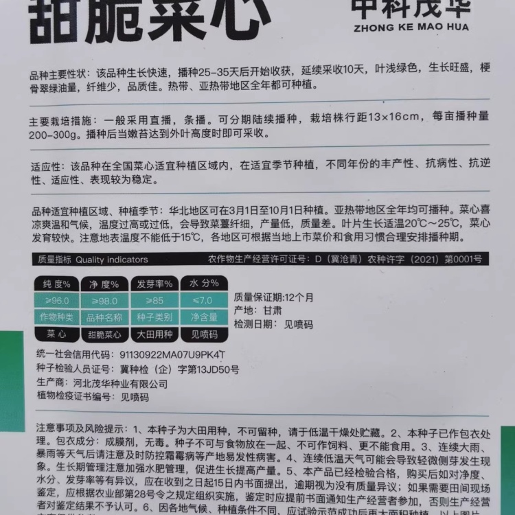 油绿甜脆菜心种子耐热耐湿菜心菜苔种籽农家春秋播种四季蔬菜