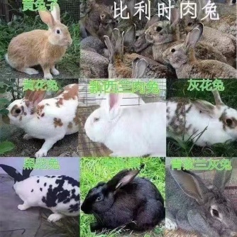 大型新西兰肉兔活物、比利时棕色花黑黄花肉兔活物月月兔