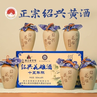 绍兴黄酒 正宗圣塔十五年陈花雕酒半干型糯米酒500ml*