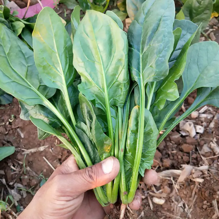黑豹杂交墨绿圆叶菠菜种子高产抗病春秋播农家大田红根菠