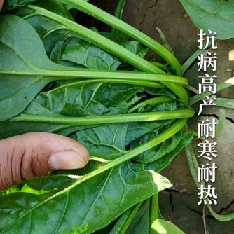 【联系我时,请说是在一亩田上看到的】 特征特性:丹麦进口,杂交菠菜新品种,中早熟品种,抗病性强,抗1-16个霜霉病生理小种。植株直立圆叶,叶柄坚韧实心、易捆扎,叶片平展,圆叶肉厚、颜色黑绿带光泽,耐抽苔性强,适合中原,东北,西北,东南。西南春秋大茬口种植优秀的品种。选择土壤肥沃的地块做播种田,每亩施腐病的有机肥5000千克,生长期追肥1-2次条播或点播,每亩参考用种量 1.52千克。
