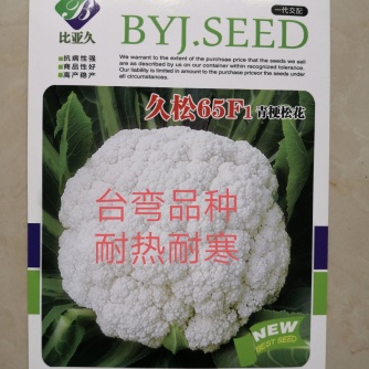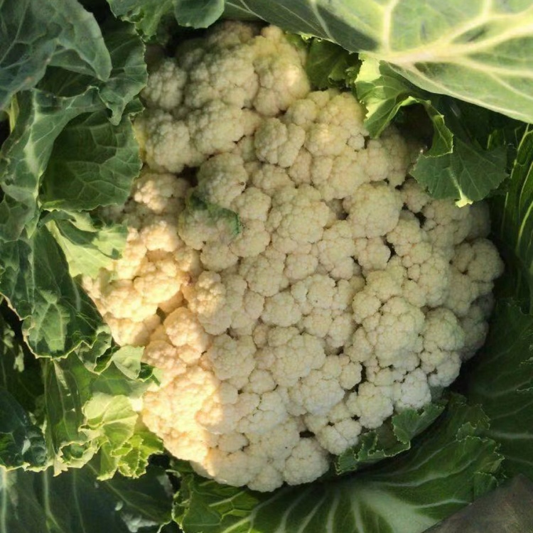【联系我时,请说是在一亩田上看到的】 品种主要性状:10月中下旬育苗 苗期两个月 膜下定植 来年4月下旬上市 该品种为雄性不育系杂交配组而成,在中原地区可以多茬次栽培,既可以春播,也可以秋播,还可以小苗露地越冬栽培。植株健壮,抗病能力强,花球松大,花球洁白,花梗碧绿,甜脆,单个重3~5斤。春季定植后65~70天左右可采收,秋季定植后90天左右可采收,小苗露地越冬栽培定植后160~180天采收。品种适宜种植区域及季节:1、郑州地区春季露地栽培2月上中旬温室大棚育苗,3月中下旬定植露地,5月下旬至6月上旬收获;秋季栽培6月中下旬播种,7月中下旬定植,10月下旬至11月上旬收获;小苗露地越冬栽培10月中下旬播种,11月中下旬“开沟+地膜覆盖”定植,来年4月下旬至5月上旬收获。2、成渝地区在7月上中旬播种,其它地区及春季栽培请根据当地气候特点合理安排播期,秋季苗龄30天。3、合理密植:秋季栽培行株距60×50cm,春季60×40cm。4、肥水合理:秋季栽培肥力中等即可,否则花球过大而不易散开,并且花梗不绿。春季要求肥力充足,促进生04长。