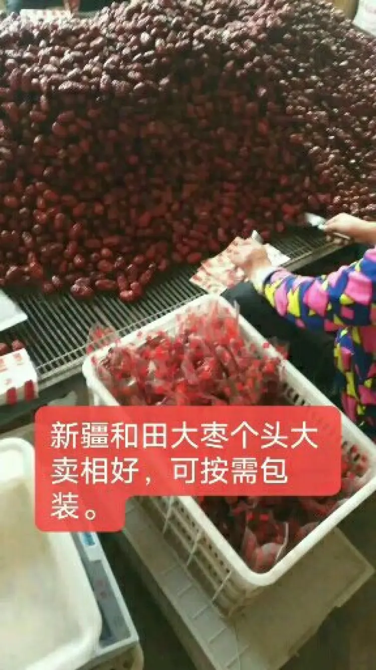【联系我时,请说是在一亩田上看到的】 和田大枣地处新疆南部,干旱少雨,光照时间长达15个小时,昼夜温差大,当地红枣以其个大、皮薄、核小、肉厚、颜色好、干而不皱。可以煲汤,熬粥,泡茶或直接吃!很好的食补品。我公司拥有5000亩的种植基地,大型筛选、分级、冲洗、杀毒、灭菌、烘干、精选、包装。日供货量30吨以上,常年供应和田大枣、若羌灰枣、箱装、袋装、特级、一级、二级、三级红枣,货源充足质量上乘,欢迎您实地考察,携手共进合作共赢。