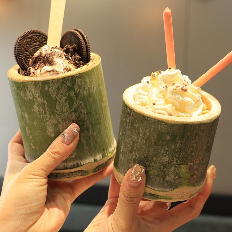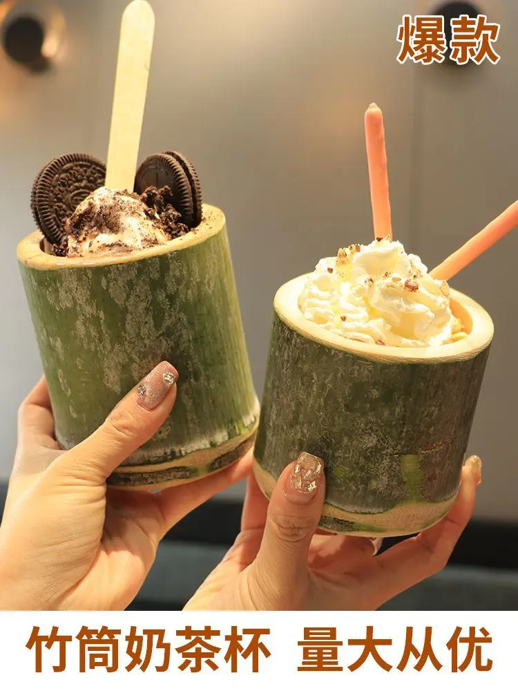 竹筒网红竹筒杯子奶茶竹筒杯罐水杯批发商用甜品杯奶茶桶摆摊
