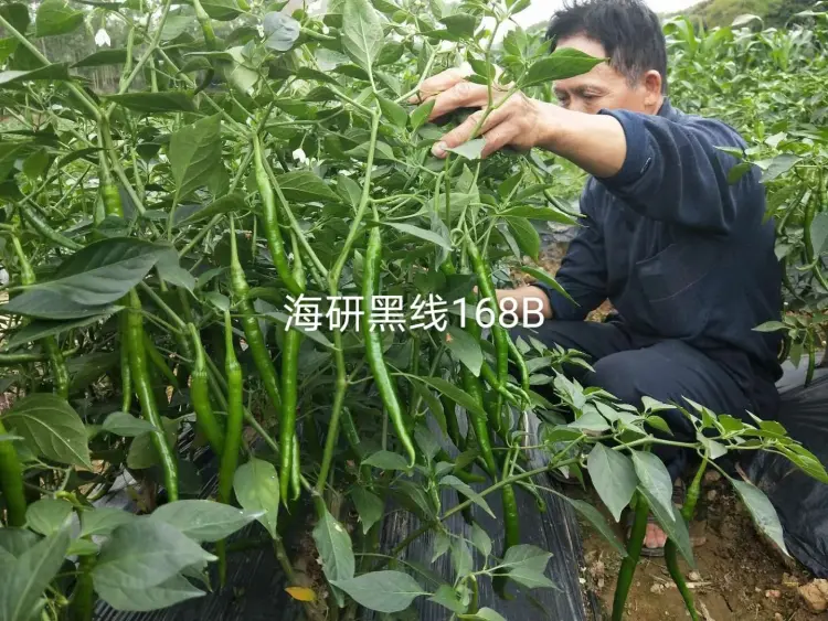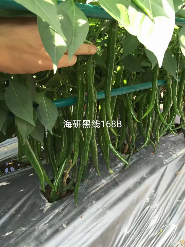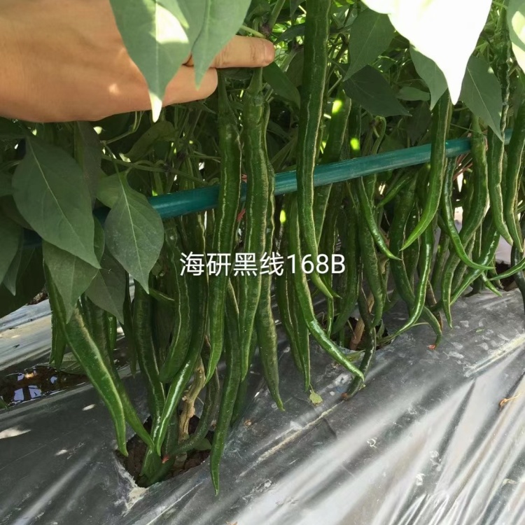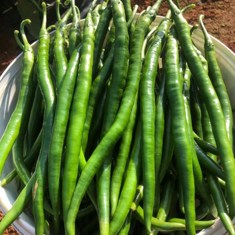 【联系我时,请说是在一亩田上看到的】 中早熟,黑线,果实顺直,果长22-25厘米,果径1.2-1.6厘米,单果重15-20克。植株长势强,分枝多节间较密,叶片小,连续座果能力强,节节有果,株高60厘米左右,果实光亮如玉,果形一致性好,硬度强,青熟果深绿色,红果颜色艳亮,辣味强,口感佳,果实特耐运输,品性好,种植容易抗病性强,连续收获期长,产量高!