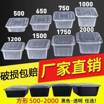 一次性长方形餐盒透明带盖加厚塑料黑色外卖快餐打包盒饭盒便