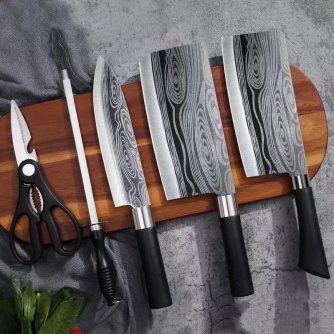 厨房刀架花纹菜刀全钢刀具套装切菜刀家用厨房五件套砍骨刀切