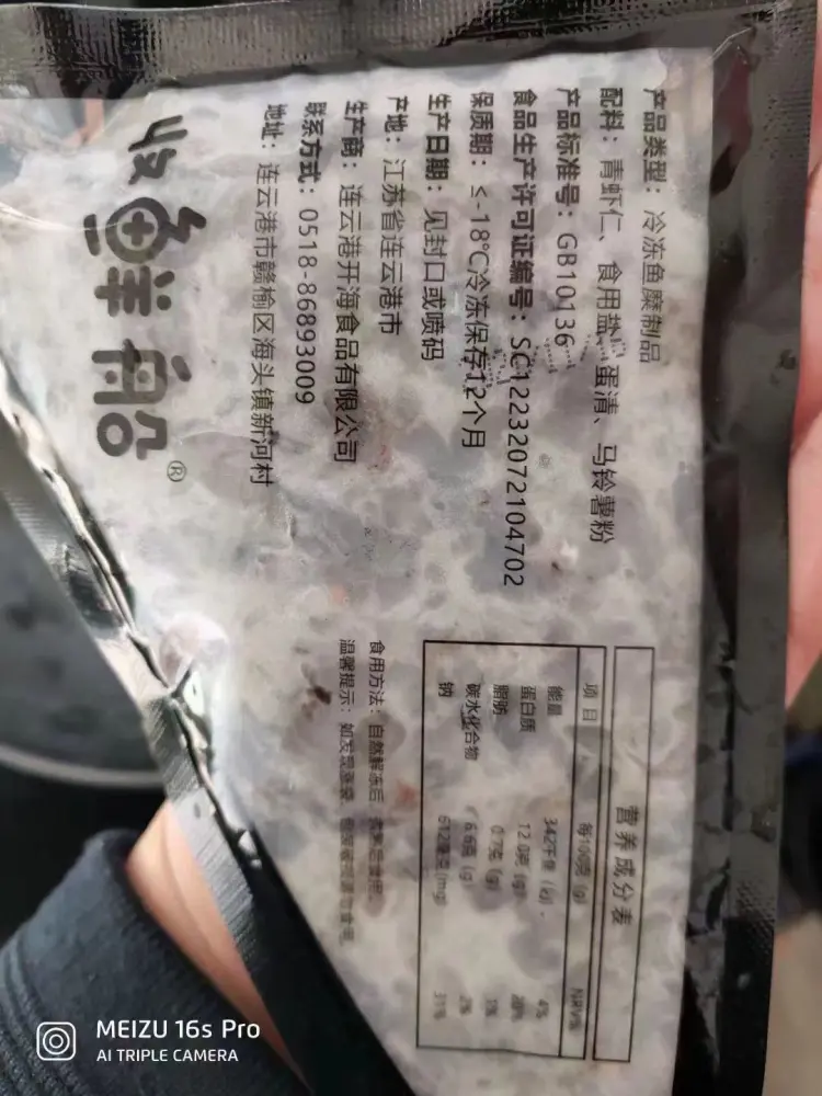 【联系我时,请说是在一亩田上看到的】 连云港开海食品有限公司实力规模大:1.虾滑标注”纯手工”,虾仁含量≥95%等字样,配料表简单明晰,4样配料,调味品主要为盐 2.国产青虾仁,可量身定制打造,挑肠虾仁保证口感(整虾切断,无碎虾残虾)。 3.解冻后取出,生制品颜色青,青虾浆青虾颗粒肉眼可见 4.生制品气味鲜,香,无异味刺鼻气味。 5.熟制品颜色红,虾肉本色呈现完美,入口鲜咸香,虾肉不散,紧实,口感劲道Q弹,虾肉弹牙,咀嚼感劲脆,多吃不反口。