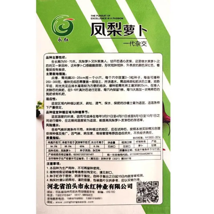 九斤红罗卜种子 约10克 包装版本更新随机发货