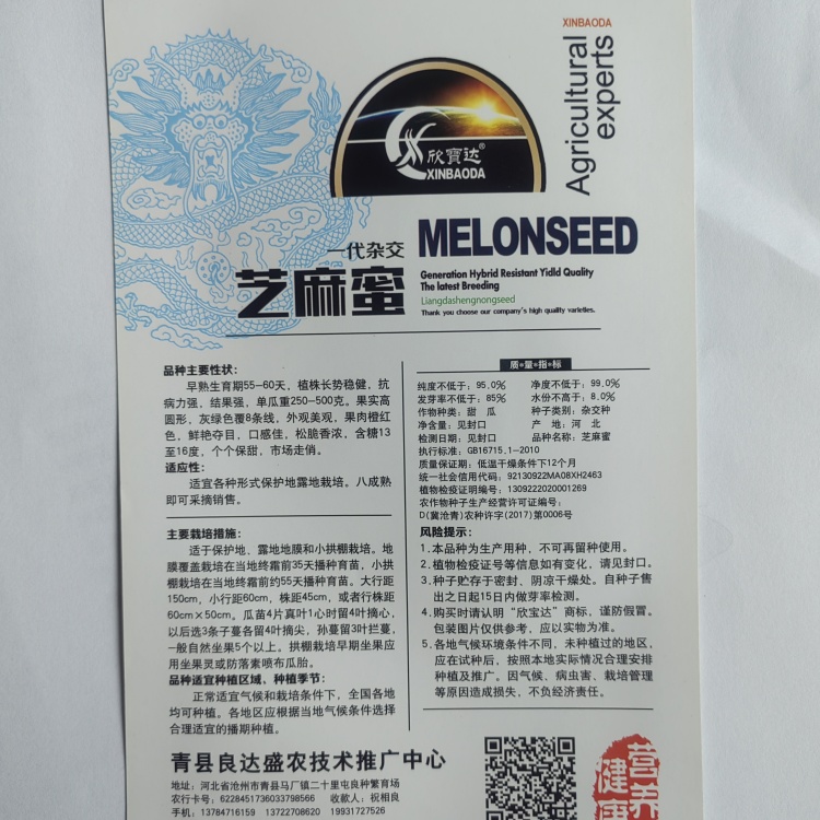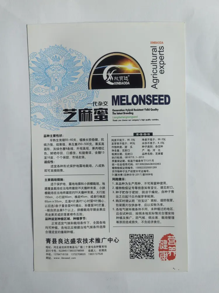 【联系我时,请说是在一亩田上看到的】 风险提示及注意事项: 1.本品种为一代杂交种,不可再留种使用。 2.植物检疫证编号等信息如有变化,请见封口。 3.种子贮存于密封、阴凉干燥处。自种子售出之日起15日内做芽率检测。 4.购买时请认明“良达盛农”商标,谨防假冒。包装图片仅供参考,应以实物为准。 5.各地气候环境条件不同,未种植过的地区,应在试种后,按照本地实际情况合理安排种植及推广。因气候、病虫害、栽培管理等原因造成损失,不负经济责任。
